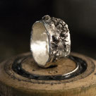 L’anello è realizzato in lastra e limatura d’argento abilmente fuse insieme, conferendo così questo particolare aspetto “materico”.