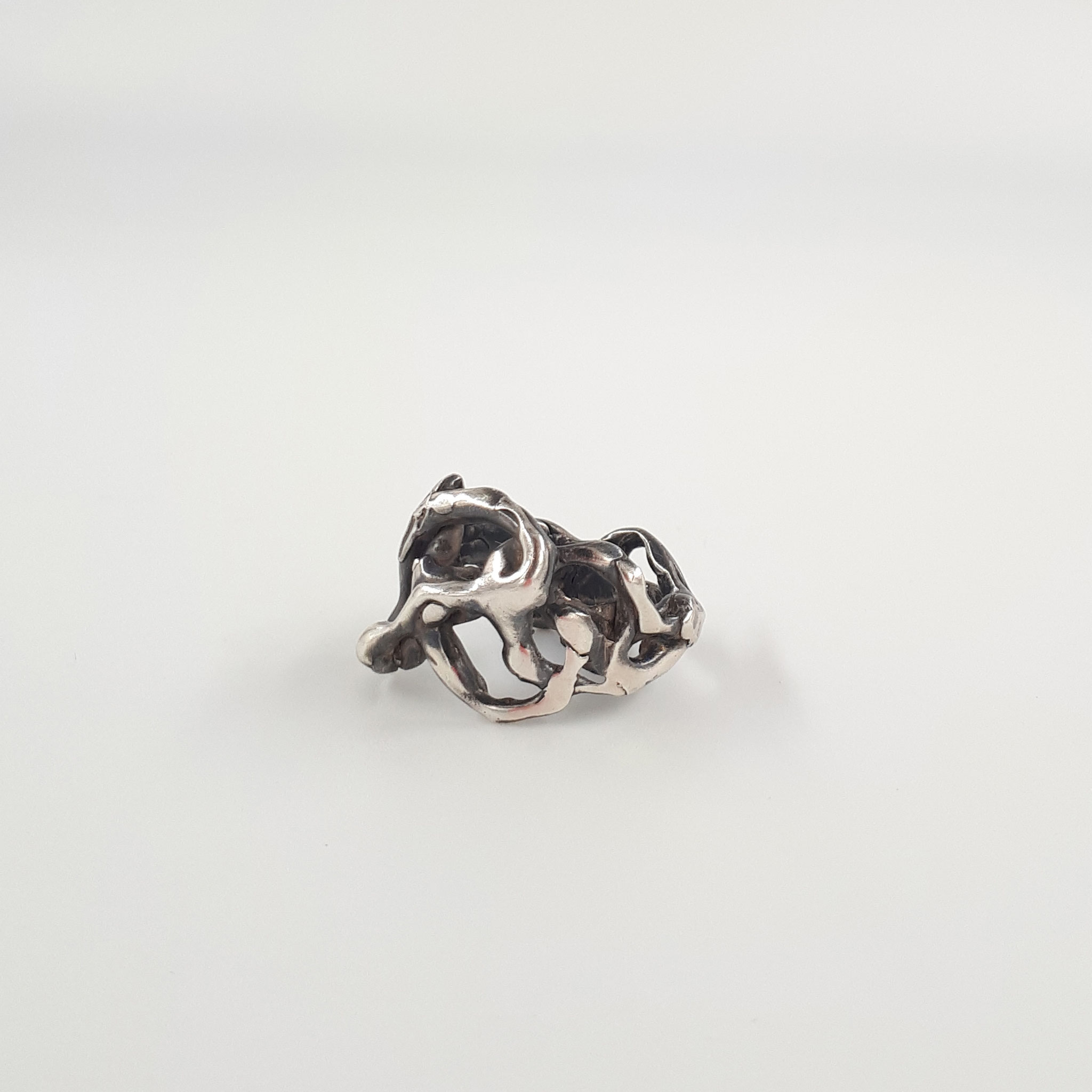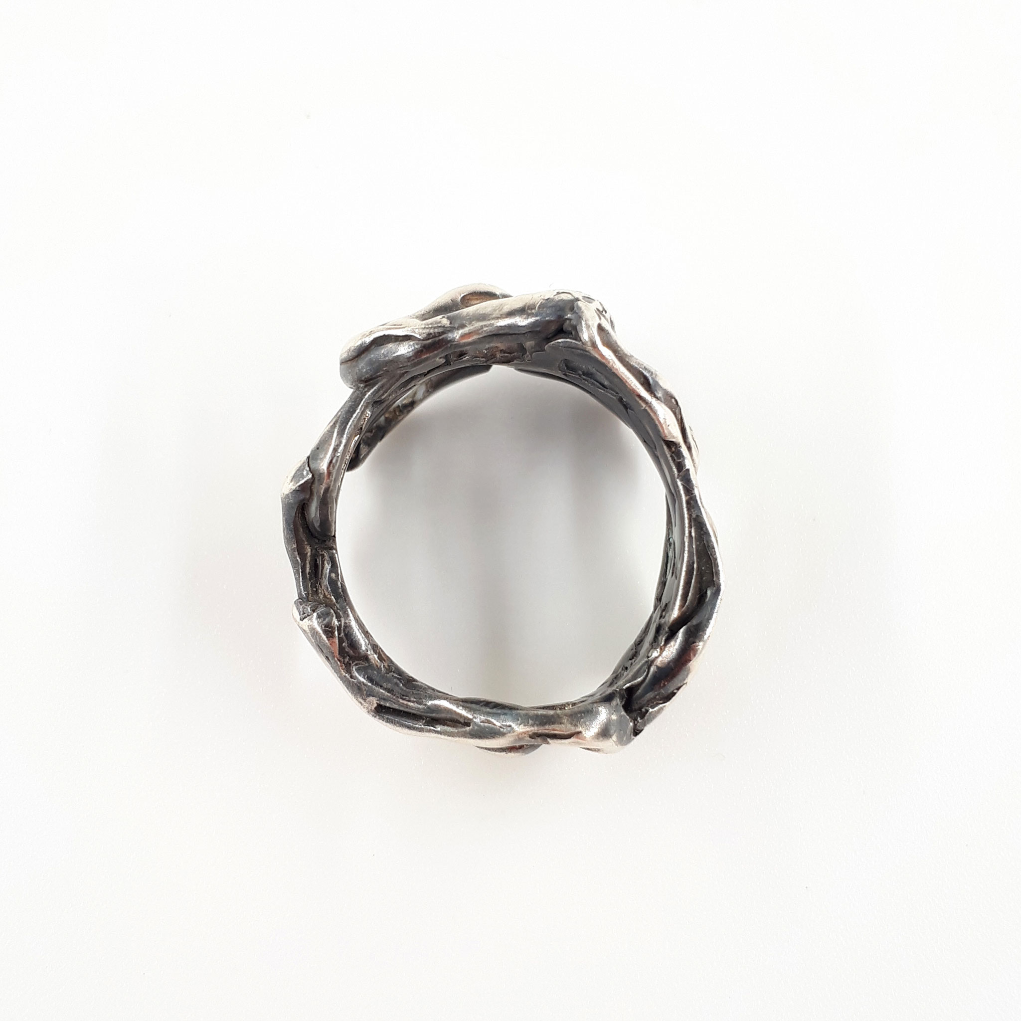 Anello realizzato in fusione a cera persa in argento 925, il modello, unico, è creato in cera.